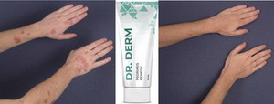 Ergebnis in den ersten Anwendungstagen. Dr. Derm >> Es ist eine universelle natürliche Creme, die bei allen Arten von Psoriasis